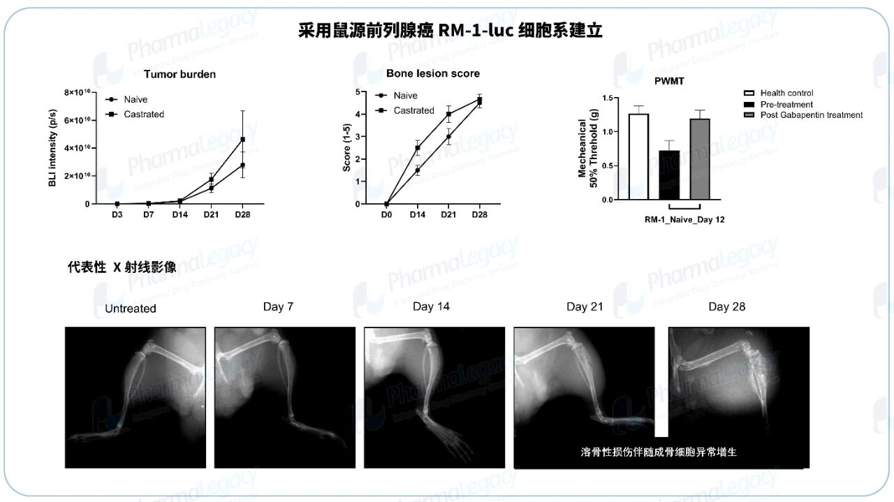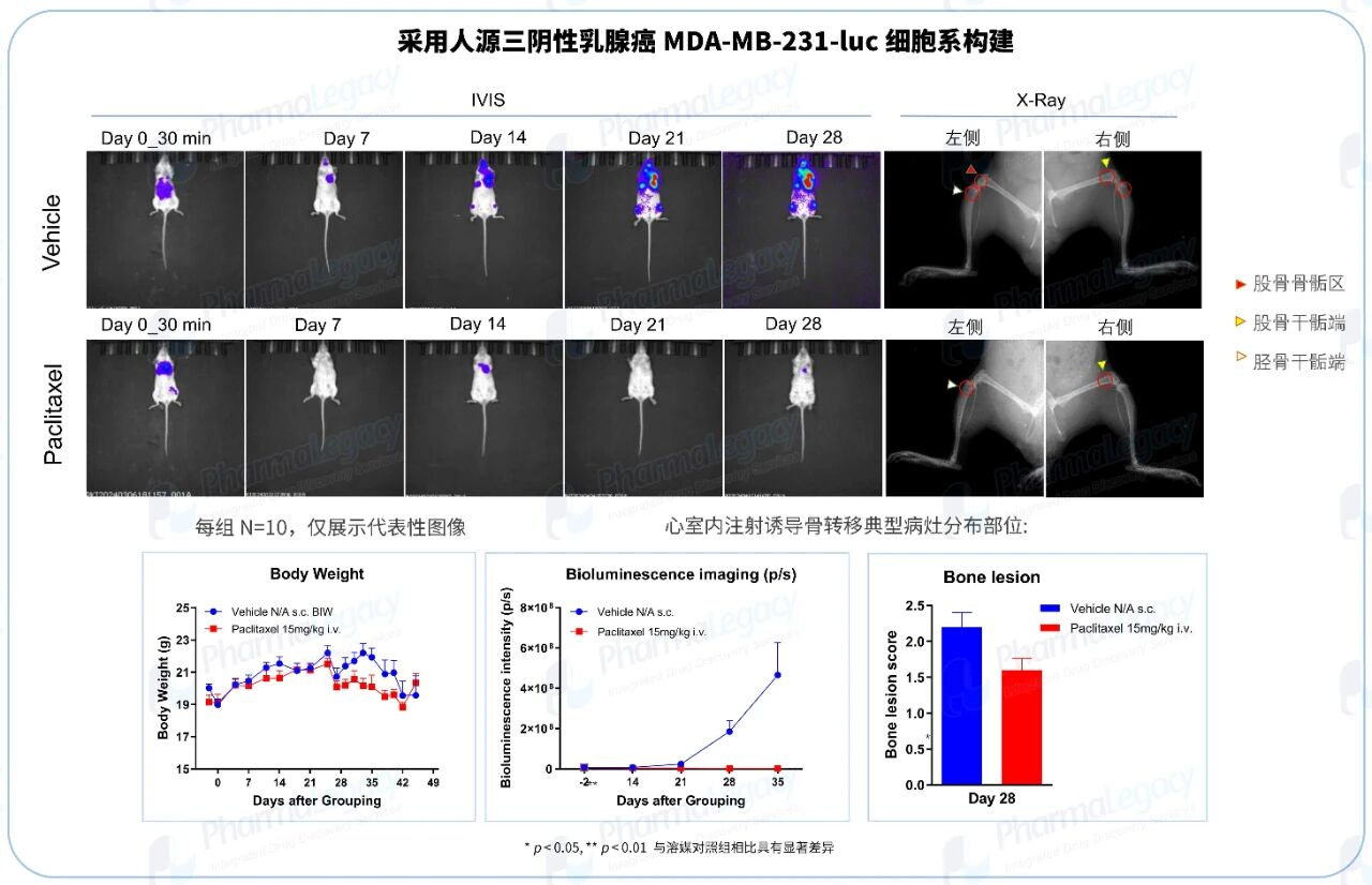 面对上述挑战,澎立生物成功开发并系统验证了癌症骨转移技术平台(BMTP©)。该平台整合高度仿真的疾病模型与多维度评价体系,能够精准模拟人类骨转移的病理进程、微环境互作及治疗响应,为深入解析发病机制、筛选骨靶向药物、评估临床转化潜力提供了可靠且高效的工具,助力突破骨转移治疗的瓶颈,加速创新疗法从实验室走向患者。