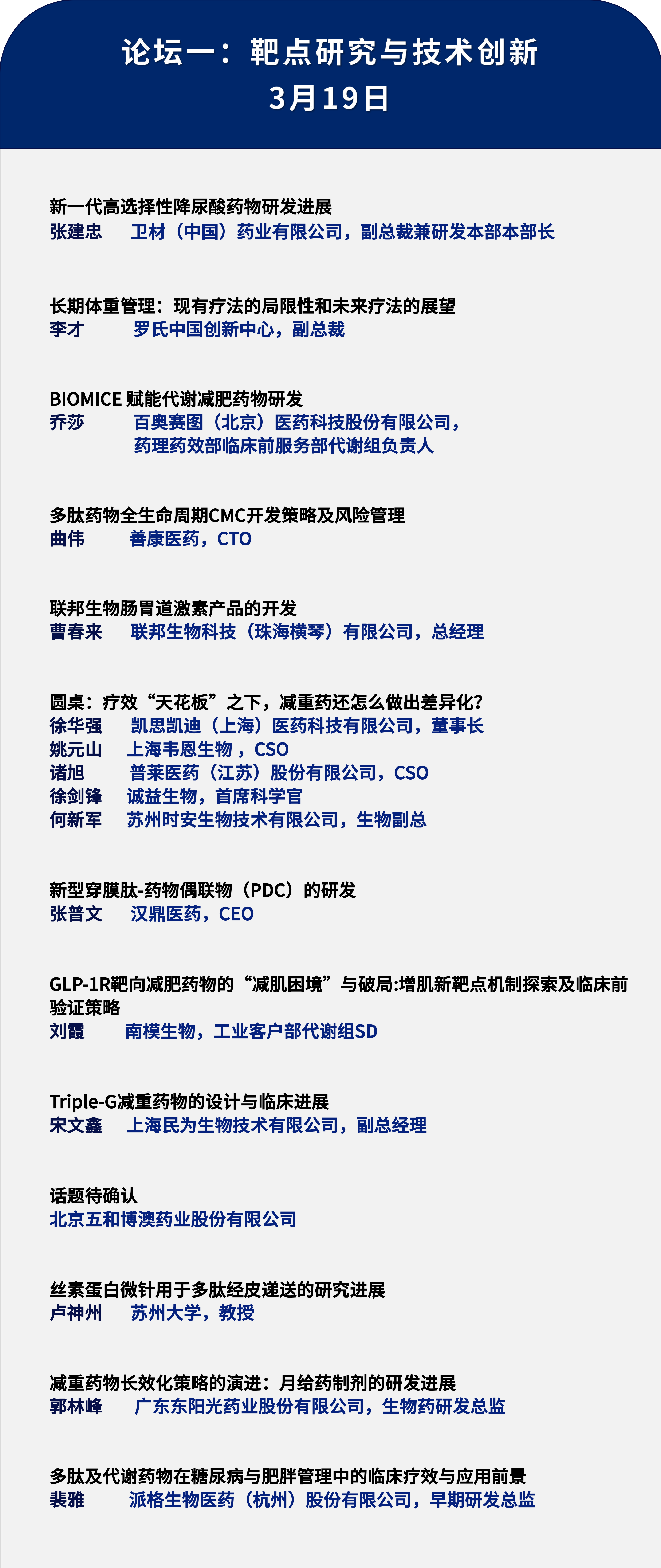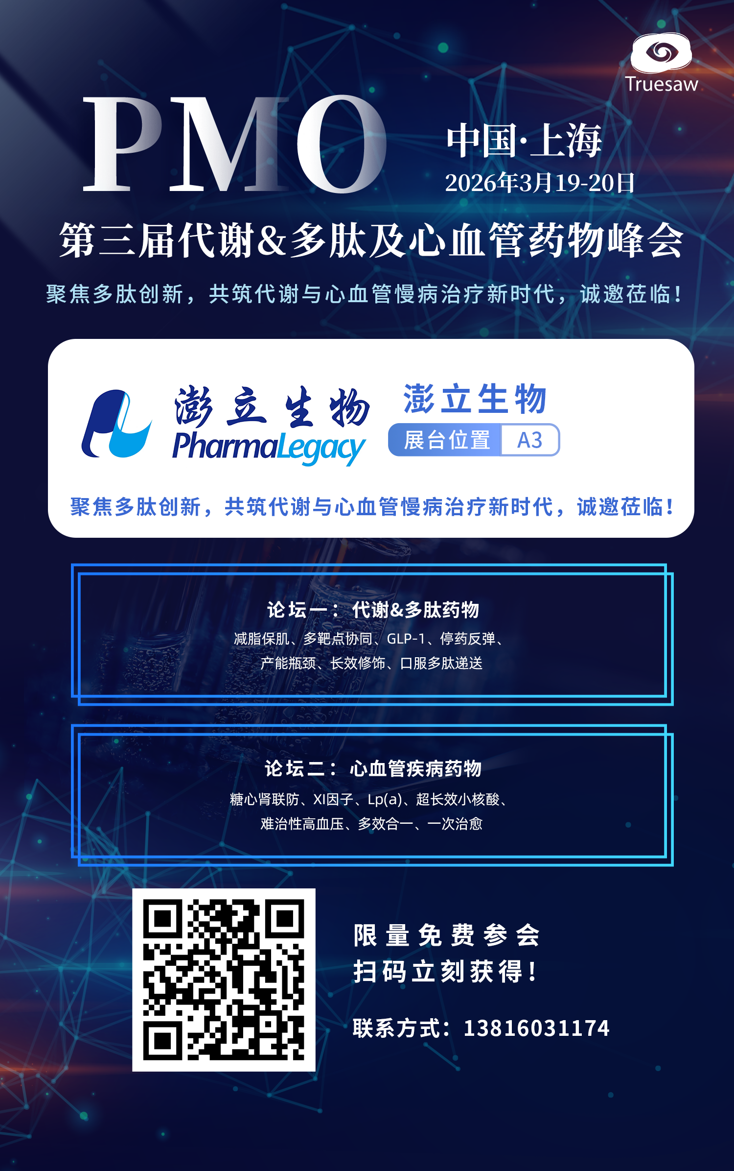 PMO 2026第三届代谢&多肽及心血管药物峰会将于2026年3月19-20日在上海召开。本次会议设置四大分论坛,聚焦代谢、多肽及心血管药物开发中的关键技术问题、代表性项目与典型企业案例,力求在交流中厘清方向,在争议中捕捉价值,推动产业回归“有效、可实现”的创新逻辑。