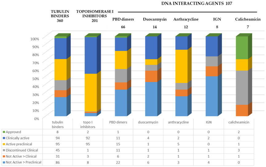 相关统计显示,产业重心正从微管抑制逐步向 Topo I抑制剂和DNA互作类机制扩展,部分原因在于这类机制在处理肿瘤异质性和旁观者效应方面展现出潜在优势;与此同时,它们也引入了新的系统毒性挑战。
